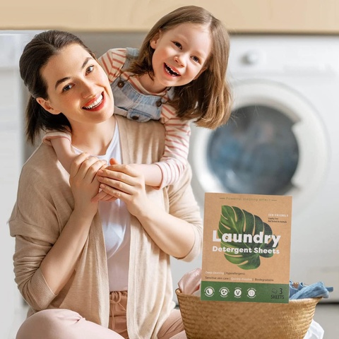植物ベースの無料ランドリー石鹸洗剤シートHEマシントラベルホーム衣類洗濯クリーンストリップ