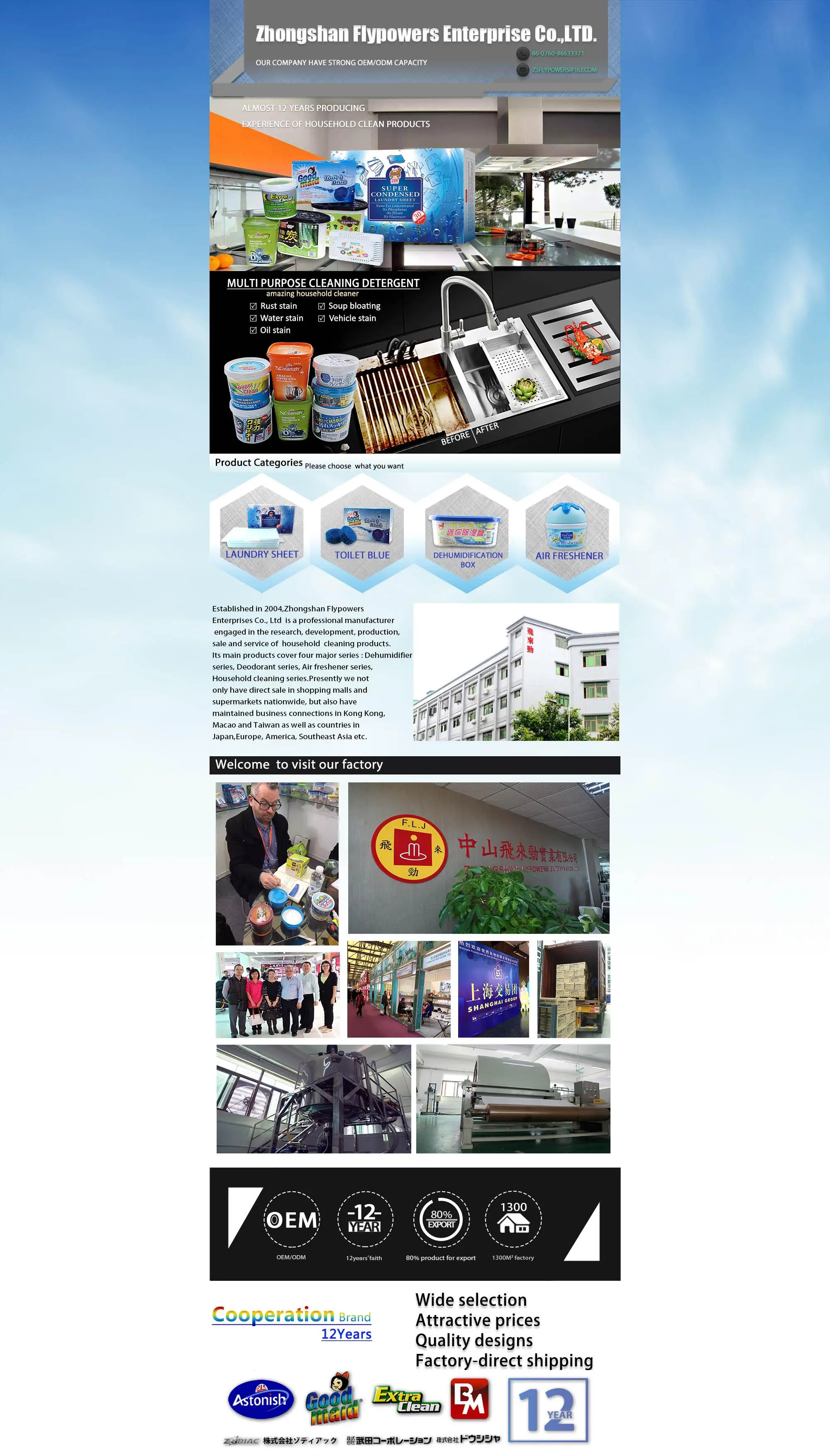 मुख्य उत्पादों: कपड़े धोने की शीट, सफाई पाउडर, गंध बूस्टर बीम, फर्श क्लीनर शीट